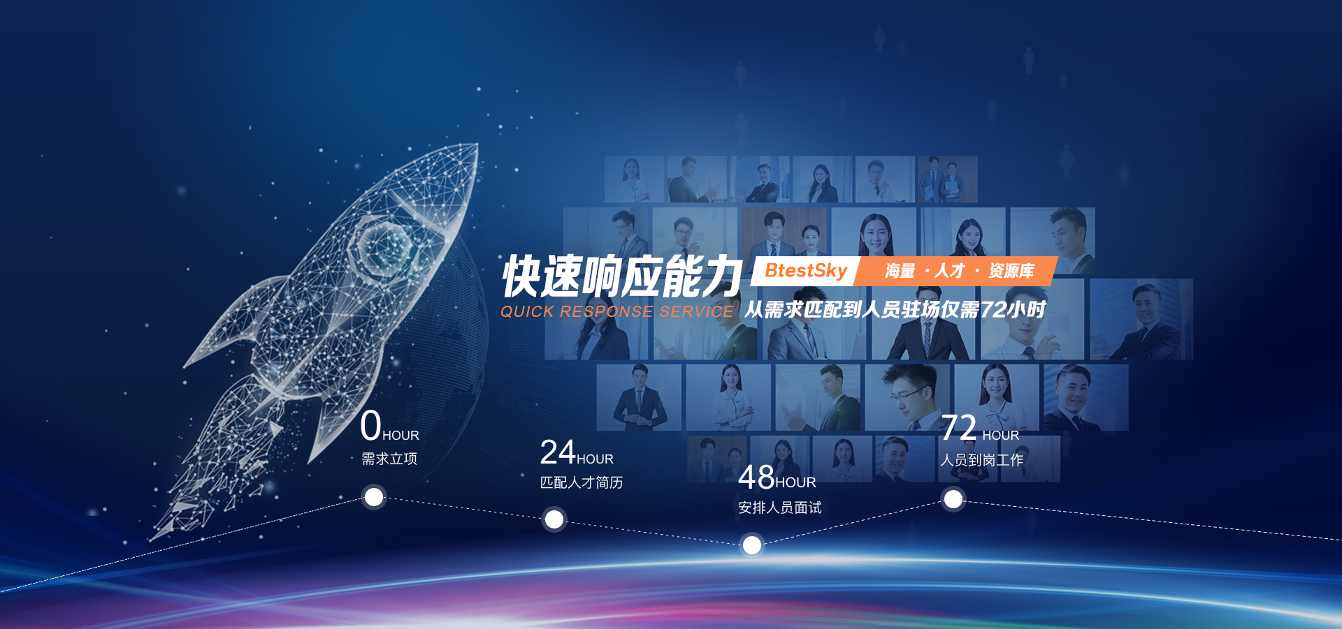 Talent outsourcing service? 多重嚴(yán)格把關(guān),從技術(shù)能力、溝通能力、學(xué)習(xí)能力、適應(yīng)能力,人員背景等多個方面進(jìn)行了嚴(yán)格篩選,使我們提供的人才更加貼合客戶需求; ? 招聘團(tuán)隊(duì)100人以上,24小時推薦簡歷,36小時內(nèi)復(fù)試,72小時入職